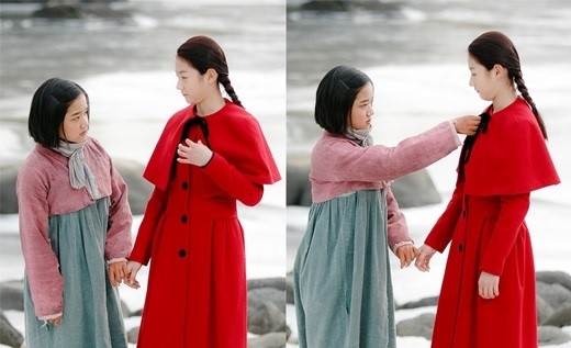 '눈길'은 일제 강점기 서로 다른 운명으로 태어났지만 같은 비극을 살아야 했던 종분(김향기)과 영애(김새론) 두 소녀의 가슴 시린 우정을 다룬 감동 드라마다. 24일 공개된 사진 속 서로의 옷매무새를 만져주며 친분을 과시하는 김향기와 김새론의 모습이 눈에 띈다. 색이 바랜 낡은 한복을 입은 김향기와 세련된 빨간 코트를 입은 김새론의 대조되는 모습은 다른 운명으로 태어난 두 소녀의 가슴 아픈 우정을 보여준다.
