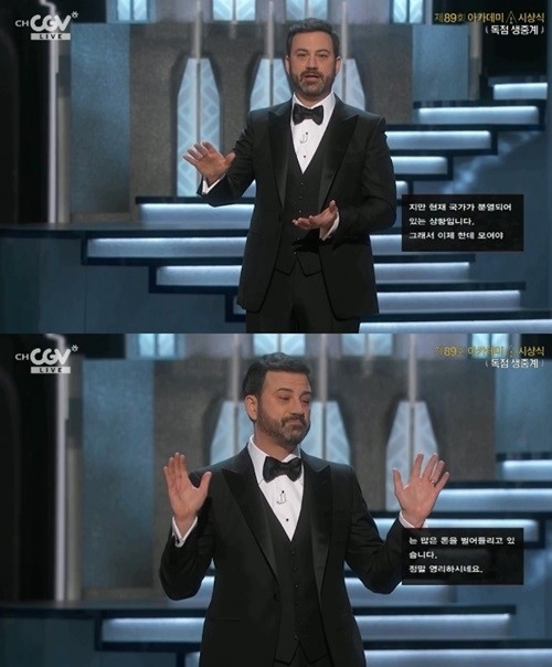 [쿠키뉴스=이은지 기자] 89회 아카데미 시상식의 오프닝을 맡은 사회자 지미 카멜이 트럼프 미국 대통령을 비판했다.