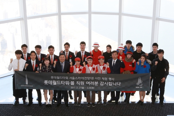 [쿠키뉴스=구현화 기자] 롯데월드타워가 27일과 28일 이틀 동안 단지 내 근무하는 파트너사 직원 3000명을서울스카이(SEOUL SKY) 전망대에 초대했다.
