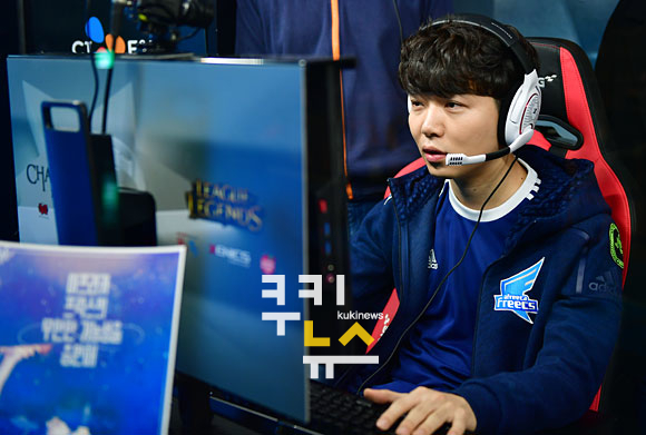 [쿠키뉴스=박효상 기자] 아프리카 프릭스의 '마린' 장경환이 8일 오후 서울 마포구 OGN e스타디움에서 열리는 2017 리그 오브 레전드 챔피언스 코리아(롤챔스) 스프링 스플릿 2라운드 삼성 갤럭시와의 경기에 앞서 손을 풀고 있다.