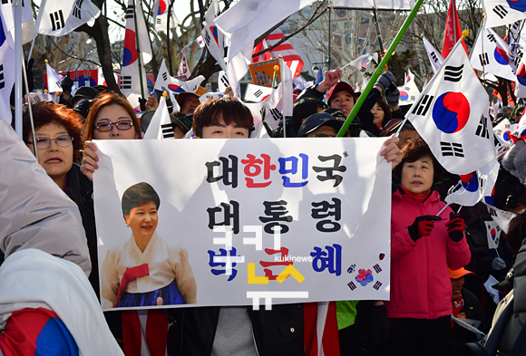 [쿠키뉴스=박효상 기자] 10일 朴대통령 탄핵이 인용된 가운데 '대통령 탄핵 기각을 위한 국민총궐기운동본부'(탄기국)가 서울 종로구 재동 헌법재판소 인근인 안국역 5번 출구 앞에서 태극기집회를 열었다.
