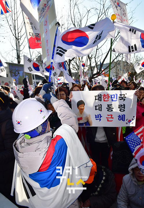 [쿠키뉴스=박효상 기자] 10일 朴대통령 탄핵이 인용된 가운데 '대통령 탄핵 기각을 위한 국민총궐기운동본부'(탄기국)가 서울 종로구 재동 헌법재판소 인근인 안국역 5번 출구 앞에서 태극기집회를 열었다.