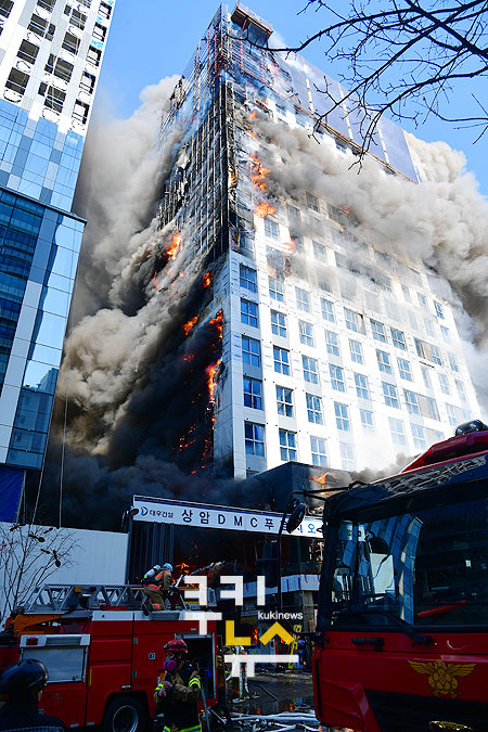 [쿠키뉴스=박효상 기자] 10일 오후 서울 상암동 MBC 옆 푸르지오 공사현장에서 대형 화재가 발생했다.