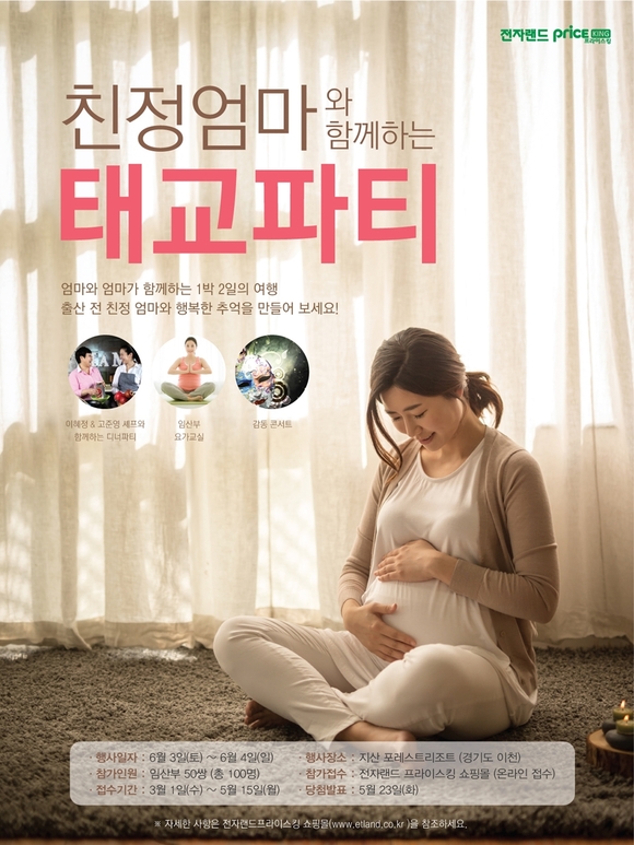 전자랜드마케팅팀 윤종일 수석담당은 “소중한 생명을 기다리는 즐거움, 예비엄마와 친정 어머니에게 행복한 추억을 선물하기 위해 오감만족 태교파티를 준비했다”며“꼭 참여하셔서 행복하고 소중한 기억을 만들 수 있길 바란다”고 말했다.