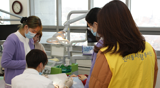 대한치주과학회 회원들과 한양여대 치위생과 학생들은 팀을 이뤄, 평소 치과 진료를 받기 어려운 성분도 복지관 대학생 100여명에게 스케일링과 칫솔질 교육 등 재능기부 봉사활동을 펼쳤다. 동국제약 직원들로 구성된 인사돌 사랑봉사단은 행사가 원활하게 진행될 수 있도록 훈련생 인솔, 현장 정리 등 지원 활동과 함께 이들의 중식을 제공했다.