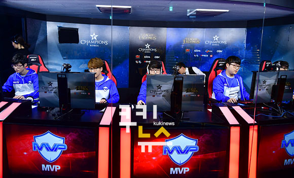 [쿠키뉴스=박효상 기자] MVP 선수들이 22일 오후 서울 마포구 OGN e스타디움에서 열린 2017 리그 오브 레전드 챔피언스 코리아(롤챔스) 스프링 스플릿 2라운드 KT 롤스터와의 경기에 앞서 손을 풀고 있다.