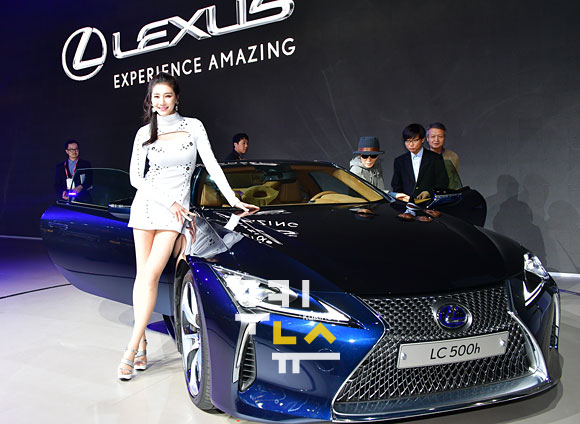 [쿠키뉴스=박효상 기자] 30일 오후 경기도 고양 킨텍스에서 '2017 서울모터쇼' 프레스데이가 열렸다. 이날 렉서스 부스에서 한 모델이 LC 500h와 포즈를 취하고 있다.