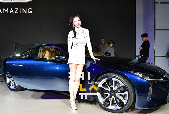 [쿠키뉴스=박효상 기자] 30일 오후 경기도 고양 킨텍스에서 '2017 서울모터쇼' 프레스데이가 열렸다. 이날 렉서스 부스에서 한 모델이 LC 500h와 포즈를 취하고 있다.