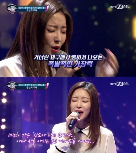 그러나 1번 참가자의 정체는 바로 11년차 무명 가수 한소아. 한소아는 즉석에서 린의 ‘위드 유'(With You)를 부르며 눈물을 흘렸다.