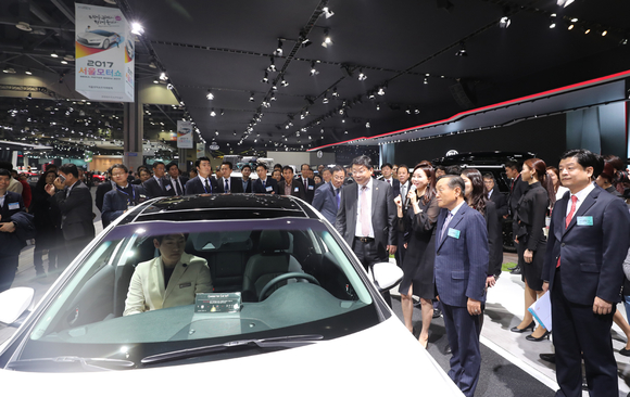 ‘2017서울모터쇼’ 개막식이 31일 오전 경기도 고양 일산 킨텍스에서 열렸다. 이 날 행사에 참석한 주형환 산업통상자원부 장관과 주요 인사들이 모터쇼 전시장을 둘러보고 있다.