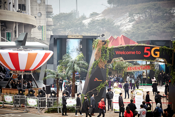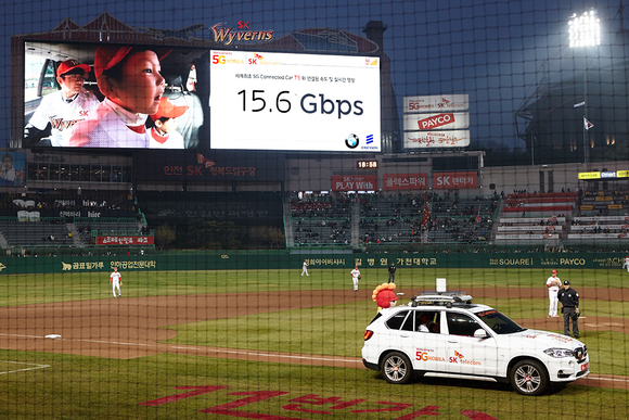 SK텔레콤은 프로야구 개막일인 31일부터 4월 2일까지 인천시 문학동 SK행복드림구장에 5G 테스트베드를 만들고 5G 기술을 통해 구현될 다양한 기술을 체험해 보고 즐기도록 했다.