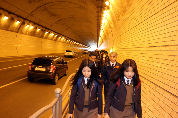 터널을 빠져 나오는데 걸리는 시간은 5분 남짓이지만 터널 구조상 차량 소음도 매연 못지않게 학생들을 위협하는 요인이기도 하다.