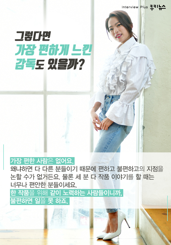 그렇다면 가장 편하게 느낀 감독도 있을까? “가장 편한 사람은 없어요. 왜냐하면 다 다른 분들이기 때문에 편하고 불편하고의 지점을 논할 수가 없거든요. 물론 세 분 다 작품 이야기를 할 때는 너무나 편안한 분들이세요. 한 작품을 위해 같이 노력하는 사람들이니까, 불편하면 일을 못 하죠.”