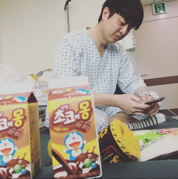 유세윤은 지난 9일 자신의 SNS에 "유상무 대장님 괜찮아 보임"이라는 글과 함께 유상무의 사진을 게재했다. 사진 속 유상무는 환자복을 입고 링거를 꽂고 있다. 또 다른 사진에서는 환자복을 입은 채 휴대전화를 만지고 있는 유상무의 모습이 담겼다.