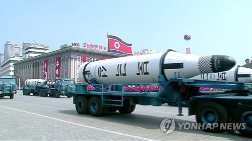 북한은 전날 열린 김일성 생일 105주년 열병식에서 신형 대륙간탄도미사일(ICBM) 등 3종의 ICBM을 공개한 데 이어 하루 만에 탄도미사일 도발을 감행했다.