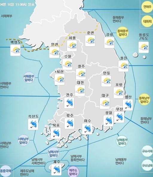 [쿠키뉴스=구현화 기자] 월요일인 17일은 전국이 흐리고 비가 오다가 오후에 서쪽 지방부터 차차 그칠 것으로 전망된다. 중부지방을 지나는 저기압 영향이다.