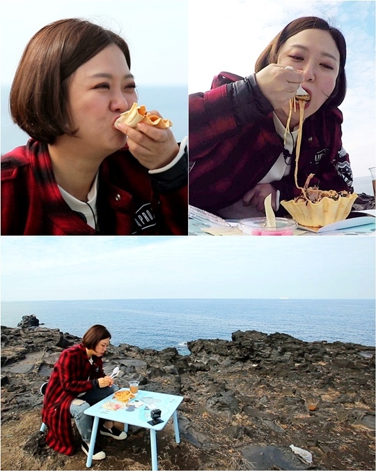 김숙은 탁 트인 바다를 배경으로 맥주 한 잔의 여유를 부렸다. 또 파스타 그릇을 씹어먹을 듯 무아지경 먹방을 즐기기도 했다. 이외에도 김숙은 주변 많은 커플 사이에서 꿋꿋하게 '혼밥'을 펼치더니 급기야 모두가 자신을 부러워한다고 주장해 웃음을 자아냈다.