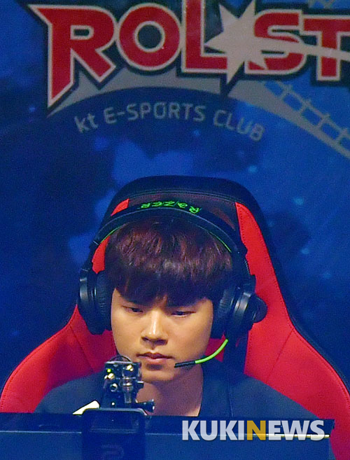 [쿠키뉴스=박효상 기자] 22일 오후 인천광역시 체육관로 삼산체육관에서 2017 리그 오브 레전드 챔피언스 코리아(롤챔스) 스프링 결승 SK텔레콤 T1과 KT 롤스터와의 경기가 열렸다. KT 롤스터의 '데프트' 김혁규가 1경기를 플레이 하고 있다.