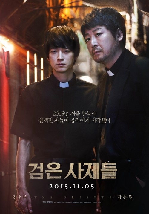 김윤석·강동원이 주연한 '검은 사제들'은 위험에 직면한 소녀를 구하기 위해 미스터리한 사건에 맞서는 두 사제의 이야기를 그린 영화다. 2015년 11월 개봉 당시 554만 명을 동원했으며, 소녀 역을 맡은 박소담이 스타덤에 올랐다.