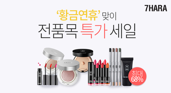 [쿠키뉴스=구현화 기자] 옐로모바일 팀그레이프의 코스메틱 브랜드 ‘7HARA(이하 칠하라)’가 5월 황금연휴를 맞아 내달 10일까지 전 제품을 특가에 선보인다.