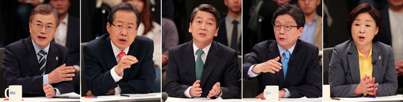 두 후보는 이날 JTBC·중앙일보·한국정치학회 주최로 열린 4차 TV토론에서 '중부담 중복지' 정책과 사드(THAAD·고고도 미사일방어체계) 배치 여부를 두고 맞붙었다.
