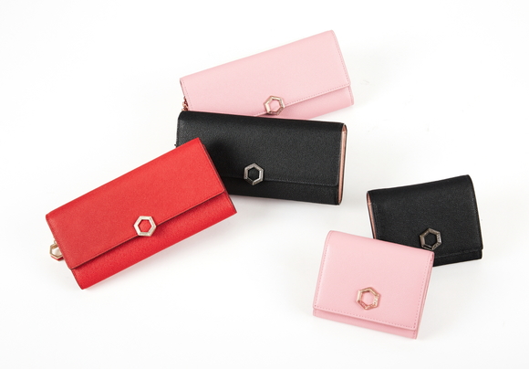 안나 지갑 앞면에는 브루노말리의 시그니처인 육각 기둥을 모티브로한 금속 장식에 큐빅 디테일을 더해 우아한 멋을 풍긴다. 장지갑, 중지갑, 명함/카드지갑 등 다양하게 구성하여 취향에 따라 선택 가능하다. 가격은 15만 8000원부터 26만 8000원까지이다.