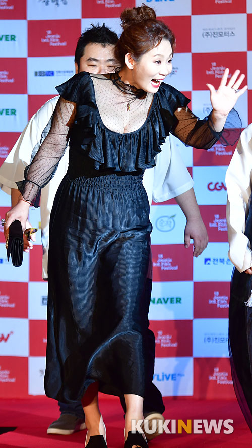 [쿠키뉴스=박효상 기자(전주)] 배우 김선영이 27일 오후 전주 완산구 전주 돔에서 열린 제18회 전주국제영화제(JIFF) 개막식에 참석해 레드카펫을 걷고 있다.