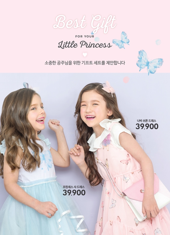 뿐만 아니라 나비 그림이 전체적으로 프린팅 되어 봄 느낌이 물씬 나는 ‘나비 쉬폰 드레스’와 풍성한 샤 스커트와 어깨 주름이 포인트인 ‘프린세스 샤드레스’도 어린이날 맞이 선물용으로 제격이다.