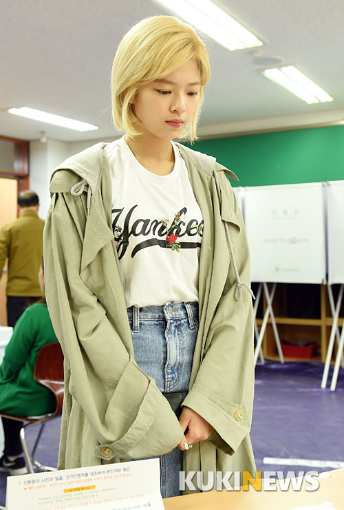 [쿠키뉴스=박효상 기자] 그룹 트와이스 정연이 19대 대통령 선거일인 9일 오전 서울 중랑구 면목4동 제 2 투표소에서 투표하고 있다.