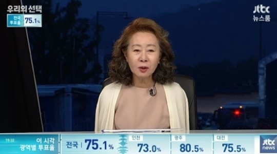 9일 방송된 JTBC ‘특집 뉴스룸’에서는 손석희 앵커의 진행 하에 윤여정, 유시민, 서복현 기자가 함께 출연해 제 19대 대통령선거일을 맞아 유권자들의 생생한 인터뷰와 시민들의 목소리를 들었다. '시민의 여정'이라는 이름 하에 출연한 윤여정은 이날 방송에서 광장의 의미에 관해 "축제라고 적었다"며 "촛불 들고 공감하는 것도 좋지만 다음 세대, 저보다 오래 살 세대들은 광장에 축제를 하러 나왔으면 좋겠다”고 밝혔다.