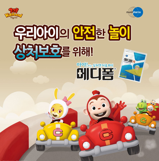 이외에도 코코몽 키즈랜드의 스크린을 통해 아이의 상처관리에 신경쓰는 엄마의 마음을 담아낸 메디폼 CF영상이 온에어 된다. 또 메디폼 포토월과 키즈랜드 카페 코너 벽면에 메디폼 이미지가 코코몽 캐릭터와 함께 붙여져 아이들에게 친근한 이미지를 전달한다.