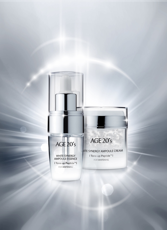 20일 업계에 따르면 최근 애경은 화장품 브랜드 에이지투웨니스(AGE 20’s)에서 에센스와 크림으로 이뤄진 피부미백 제품 ‘화이트 시너지’ 라인 2종을 출시했다. ‘화이트 시너지 앰플 에센스’와 ‘화이트 시너지 앰플 크림’ 모두 에이지투웨니스가 독자 개발한 ‘톤업 펩타이드’ 성분의 고농축 톤업 앰플이 별도로 담겨 있는 게 특징이다.