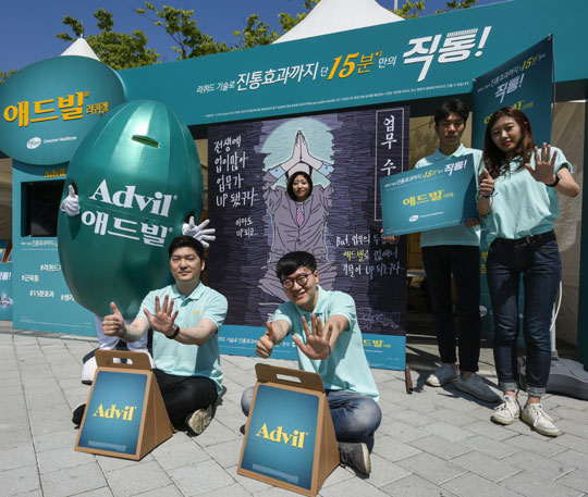 화이자제약은 일상의 스트레스를 잊고 힐링을 선사하는 페스티벌의 특징과 연계해 시원한 물줄기처럼 빠르게 진통을 완화 시켜주는 애드빌의 가치를 효과적으로 전달하기 위해 부스를 운영했다.