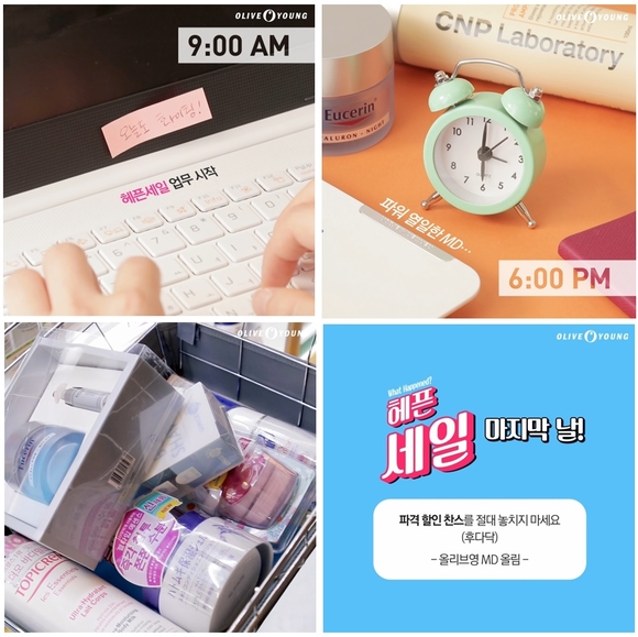 이 영상은 실제 올리브영 MD의 염원을 담은 유쾌한 내용으로 제작돼 재미를 더했다. 영상에는 세일 기간 내내 일만 하다가 쇼핑을 하지 못한 워커홀릭 MD가 세일 마지막 날 만큼은 놓치지 않기 위해, 쉴 새 없이 일하고 매장으로 향하는 모습을 담았다. 이 영상은 세일 마지막 날까지 파격 할인 찬스를 놓치고 싶지 않은 소비자들의 입장을 대변하며 큰 공감을 얻고 있다.