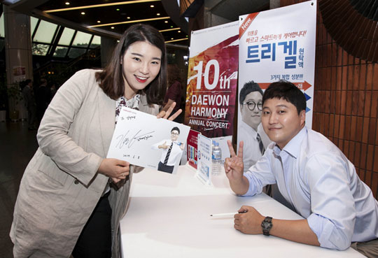 ◎대원제약 트리겔 모델 김대명, 대원하모니 나눔콘서트서 발달장애청소년 응원=대원제약(대표 백승열)의 위장약 ‘트리겔’의 광고모델인 배우 김대명이 지난 8일 대원하모니 정기연주회 10주년을 맞아 KBS콘서트홀에서 열린 나눔콘서트를 찾아 기념 팬사인회를 진행했다.