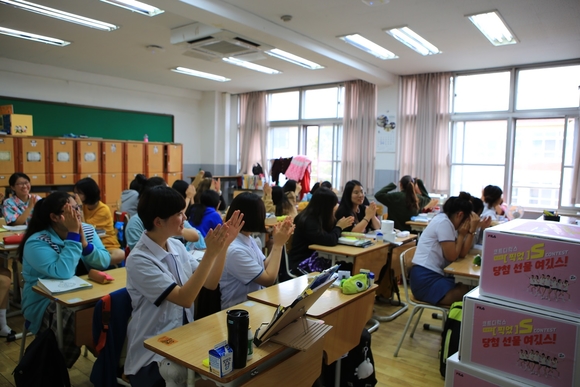 글로벌 스포츠 브랜드 휠라(FILA)는 최근 진행한 '코트디럭스 우리반 [찍었]스 콘테스트'(이하 찍었스 콘테스트) 이벤트에 참여한 전국 중고생 1만8000여 명 전원에게 신제품 '휠라 클래식(FILA CLASSIC)' 슈즈를 선물로 제공하겠다고 15일 깜짝 발표했다. 휠라는 지난 6월 7일 충남 홍성여고를 시작으로 동두천고, 진주여고, 명일여고 등 이벤트 당첨 학급을 순차 방문하며 깜짝 선물 증정식을 진행하고 있다.