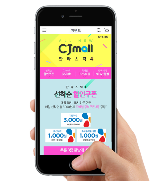CJ몰의 새단장 기념하기 위한 ‘ALL NEW CJ몰 판타스틱4’ 이벤트도 30일까지 진행된다. 먼저, 패션, 뷰티, 리빙 등 다양한 카테고리 상품을 매일 30% 이상 할인하고 10% 적립금(최대 3만원)까지 지급하는 ‘특가 딜’을 진행하고, 개편된 CJ몰 곳곳에 흩어진 'CJmall' 알파벳을 모두 모은 선착순 1000명에게 적립금 3000원을 증정하는 ‘CJmall을 찾아라’ 이벤트도 진행한다.