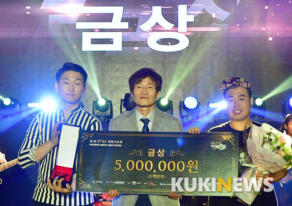 [쿠키뉴스=박효상 기자] 비버타운이 22일 오후 서울 여의도 한강공원 물빛무대에서 열린 제1회 쿠키뉴스 대학가요제에서 금상을 수상하고 포즈를 취하고 있다.