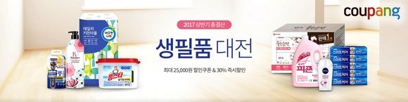 [쿠키뉴스=구현화 기자] 쿠팡이 올해 상반기 인기 생필품을 한 곳에 모아 풍성한 혜택과 함께 선보이는 ‘2017 상반기 생필품 대전’을 다음달 19일까지 진행한다.