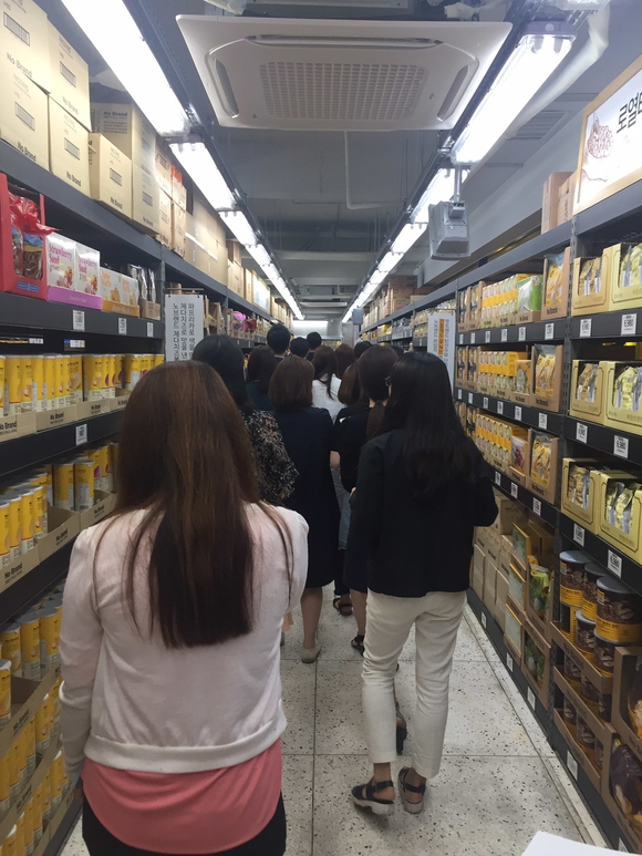 이날 10시반, 노브랜드 매장의 첫 영업이 시작되자 주변 아파트 주민을 포함해 시장 인근 주민들은 구름처럼 몰렸다. 입소문을 듣고 온 이들은 처음 문을 연 매장을 빠르게 채웠다. 버터쿠키와 초콜릿 등을 장바구니에 담고 있던 인근 이편한세상 아파트 주민인 한옥자(72세, 여)씨는 "이 시장은 많이 오지만 이 2층까지 올라와 본 것은 처음"이라며 "25분 거리에 아파트가 있어 운동할 겸 가깝게 장 보러 오기에 좋겠다"고 말했다.