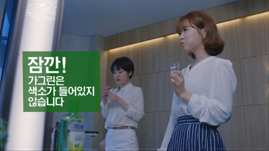 투명한 가그린을 사용하는 배우 박보영의 모습을 통해 ‘가그린은 색소가 들어있지 않습니다’, ‘타르색소 무첨가로 투명합니다’, ‘건강하게 99.9% 클린’이라는 가그린의 특징을 강조하고 있다.