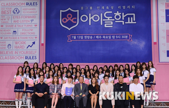 ‘아이돌학교’는 41명의 아이돌 지망생들이 11주 동안 각 분야 전문가들에게 배우고 익히며 성장하는 걸그룹 전문 교육 기관 콘셉트의 프로그램이다. 이순재와 김희철, 바다, 장진영, 스테파니, 윤태식, 블랙아이드필승이 선생님으로 출연하며 오는 13일 오후 9시30분 첫 방송된다.