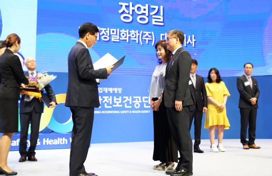 한미정밀화학은 원료의약품 전문 회사로 한미약품그룹의 계열사이다. 한미정밀화학은 2004년부터 무재해 운동을 지속적으로 추진해 무재해 5배수를 달성하는 등 사업장 안전보건 수준 향상을 통해 산업재해 예방에 기여한 공로를 인정받았다.