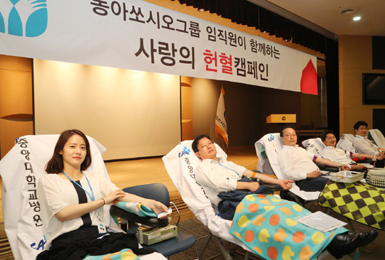 ◎동아쏘시오그룹 헌혈 통해 생명나눔 실천=동아쏘시오그룹은 19일 오전 8시부터 본사 7층 대강당에서 중앙대병원 헌혈센터와 함께 동아쏘시오홀딩스, 동아에스티, 동아제약, 동아오츠카 임직원 대상으로 헌혈 캠페인을 실시했다.