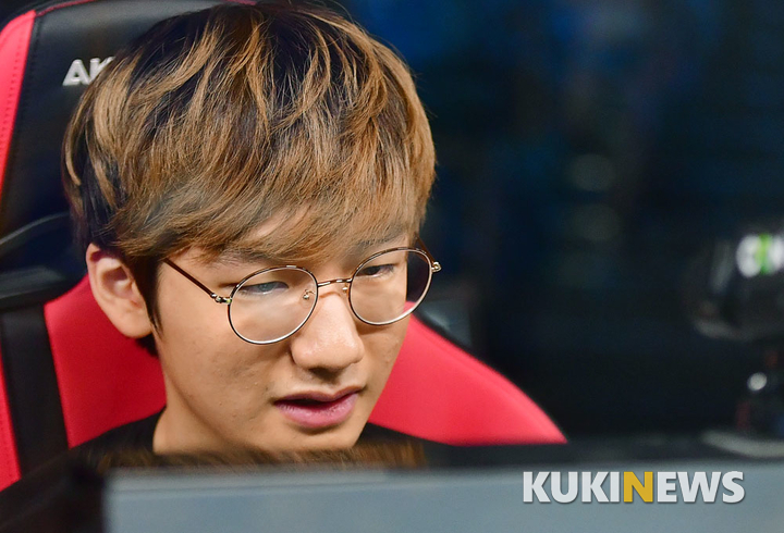 [쿠키뉴스=박효상 기자] SK 텔레콤 T1 '피넛' 한왕호가 20일 오후 서울 마포구 OGN e스타디움에서 열린 2017 리그 오브 레전드 챔피언스 코리아(롤챔스) 서머 스플릿 2라운드 롱주 게이밍과의 경기에 앞서 손을 풀고 있다.