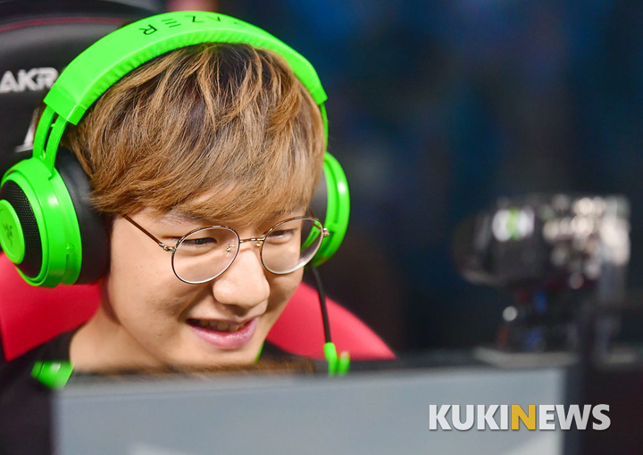 [쿠키뉴스=박효상 기자] SK 텔레콤 T1 '피넛' 한왕호가 20일 오후 서울 마포구 OGN e스타디움에서 열린 2017 리그 오브 레전드 챔피언스 코리아(롤챔스) 서머 스플릿 2라운드 롱주 게이밍과의 경기에 앞서 손을 풀고 있다.