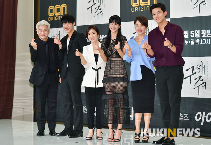 [쿠키뉴스=박효상 기자] 배우 조성하와 우도환, 윤유선, 서예지, 박지영, 옥택연이 27일 오후 서울 영중로 타임스퀘어 아모리스 홀에서 열린 OCN 드라마 ‘구해줘’ 제작발표회에 참석해 포즈를 취하고 있다.