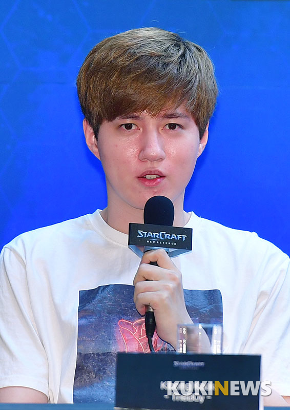 [쿠키뉴스 부산=박효상 기자] 김택용이 30일 오후 부산 광안리 아쿠아팰리스호텔에서 열린 스타크래프트 리마스터 행사 'GG 투게더' 기자회견에 참석해 소감을 말하고 있다.