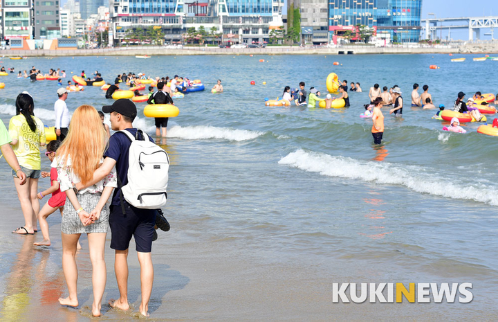[쿠키뉴스 부산=박효상 기자] 본격적인 휴가철을 맞은 30일 오후 부산 수영구 광안리해수욕장을 찾은 피서객들이 즐거운 시간을 보내고 있다.