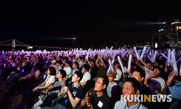 [쿠키뉴스 부산=박효상 기자] 30일 오후 부산 광안리해수욕장에서 열린 스타크래프트 리마스터 행사 '이스포츠 특별전'에서 관객이 환호하고 있다.
